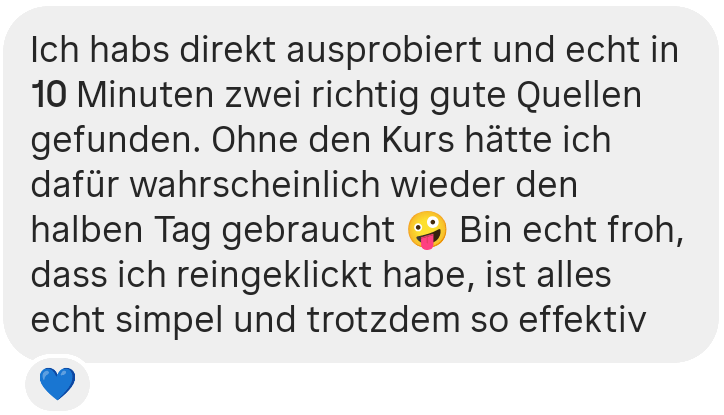 Du lernst die effizienteste Methode, um in nur 5 Minuten gezielt passende, zitierfähige Quellen zu finden. Konkret erfährst du, wie du…